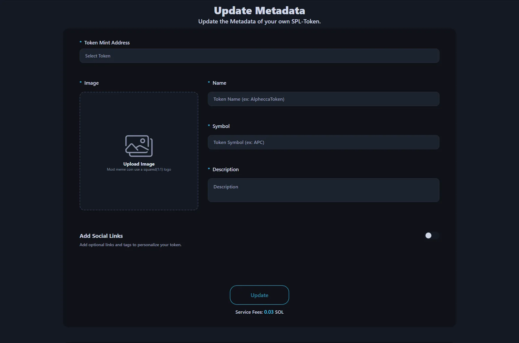Launched your Solana token with a typo in the name? Wrong logo? Missing social links? You can update it — as long as the update authority hasn't been revoked.