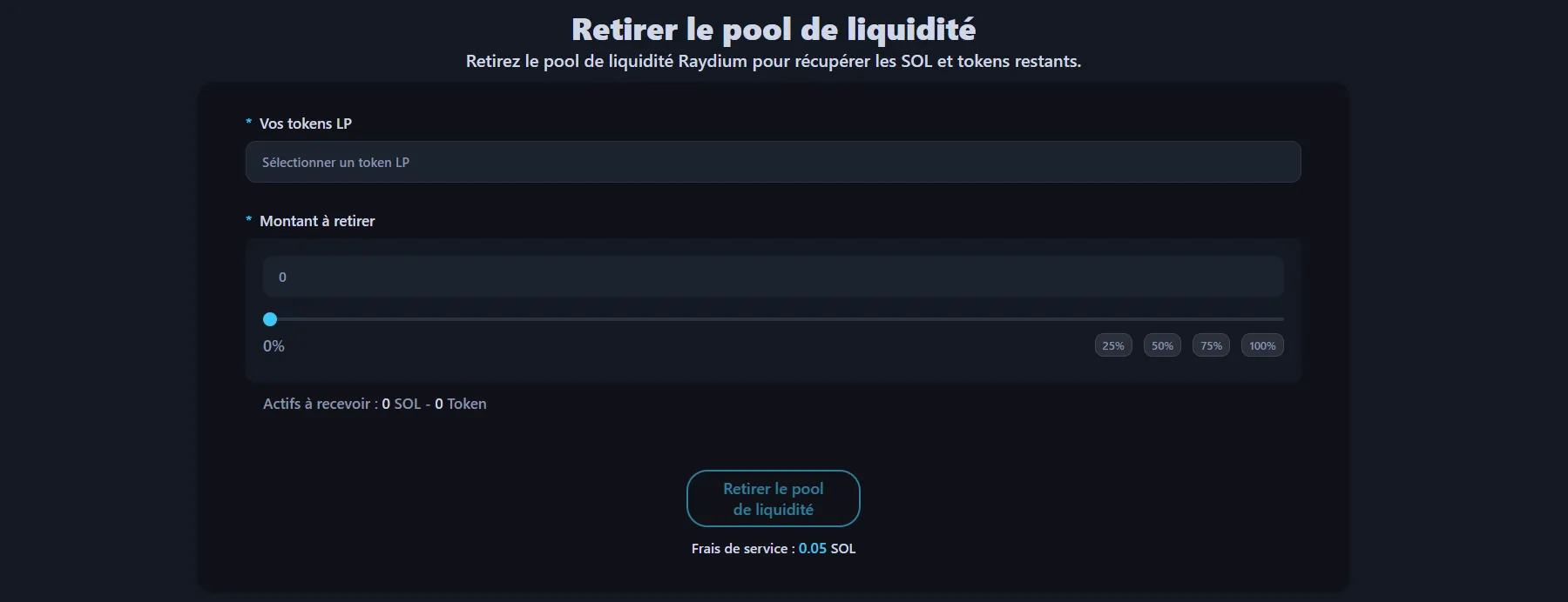 - Cliquez sur le bouton « Retirer le pool de liquidité »