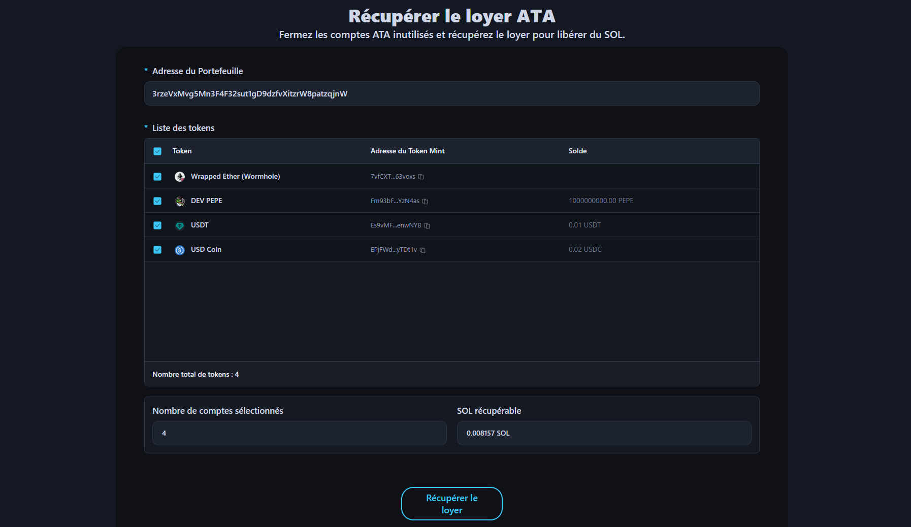 - Même les wallets avec un solde de 0 SOL peuvent récupérer le loyer en spécifiant un wallet séparé pour les frais de gas