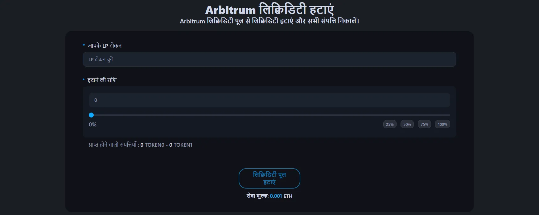 Arbitrum लिक्विडिटी पूल हटाने की विस्तृत गाइड के लिए, EVM Chain लिक्विडिटी रिमूवल ट्यूटोरियल देखें।