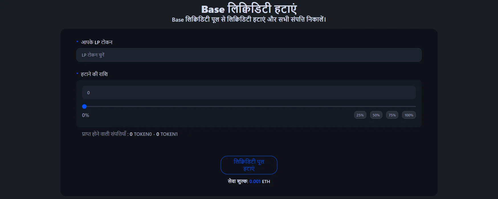 - कितनी लिक्विडिटी हटानी है चुनें: 25%, 50%, 75%, या 100% निकाल सकते हैं।