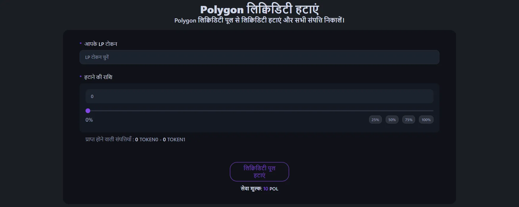 Polygon लिक्विडिटी पूल हटाने की विस्तृत गाइड के लिए, EVM Chain लिक्विडिटी रिमूवल ट्यूटोरियल देखें।