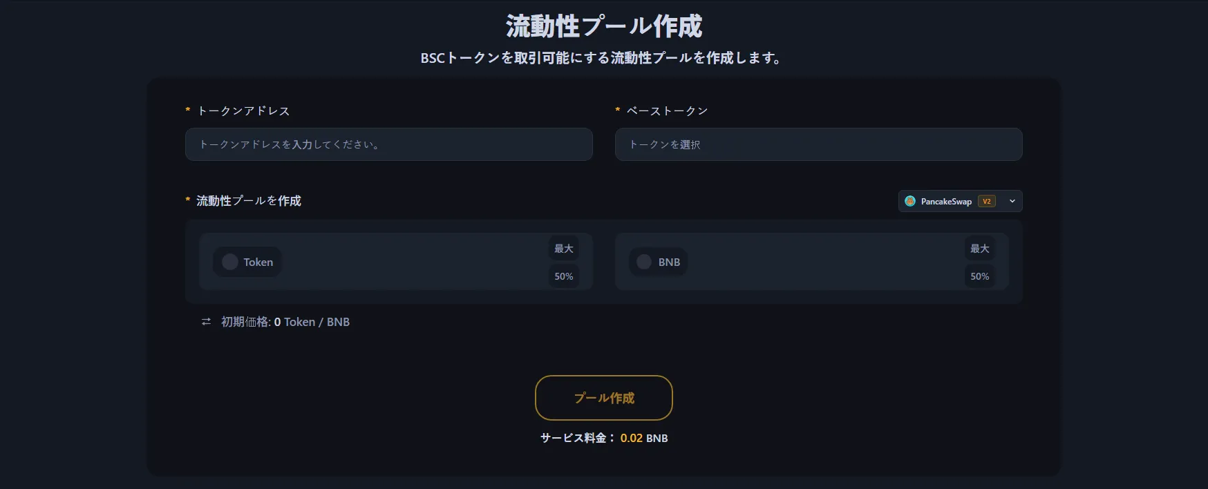 BNBチェーントークンの流動性プールを作成するには、BNBチェーン流動性プール作成ツール(https:/