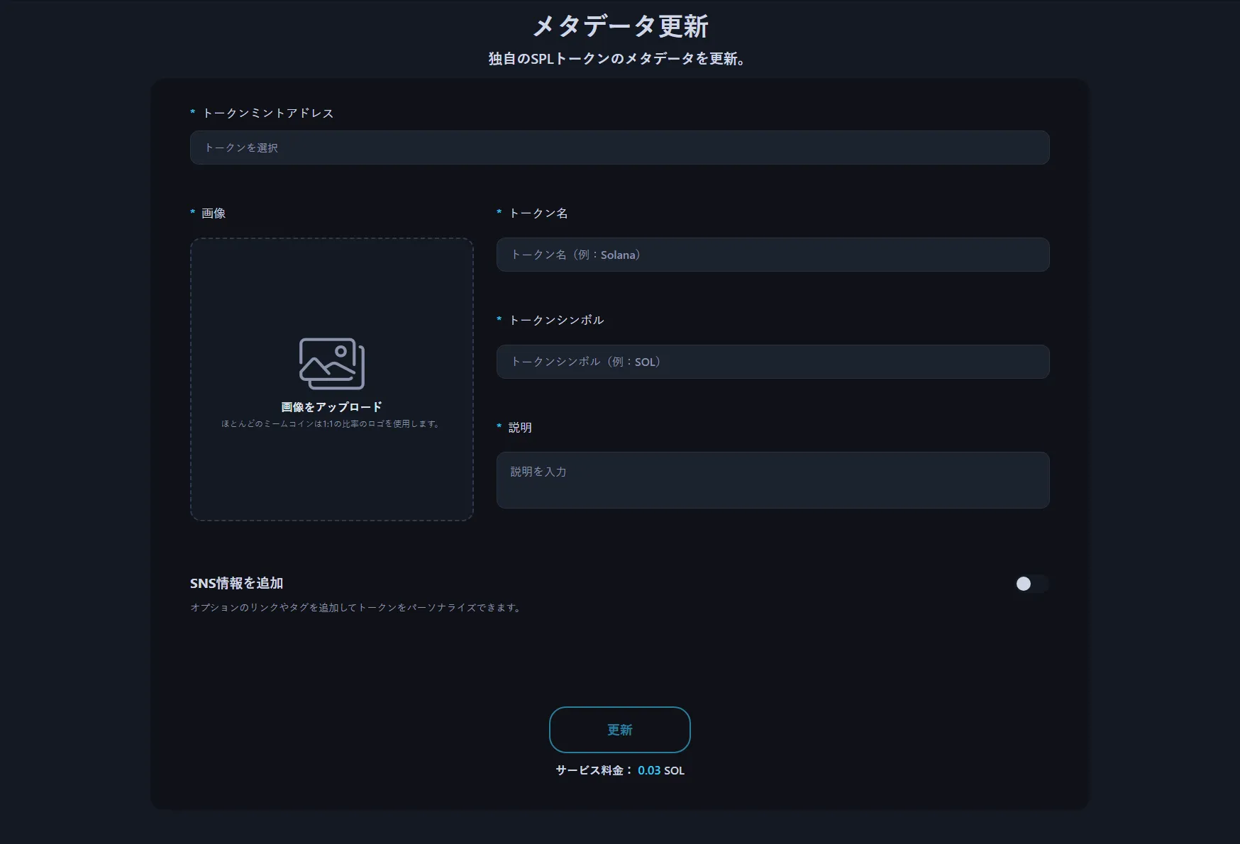 詳しい手順はSolanaトークンメタデータ更新チュートリアルをご覧ください。