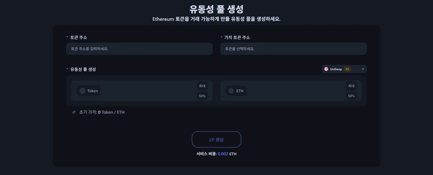 이더리움 토큰의 유동성 풀을 만들려면 이더리움 유동성 풀 생성 도구(https:/