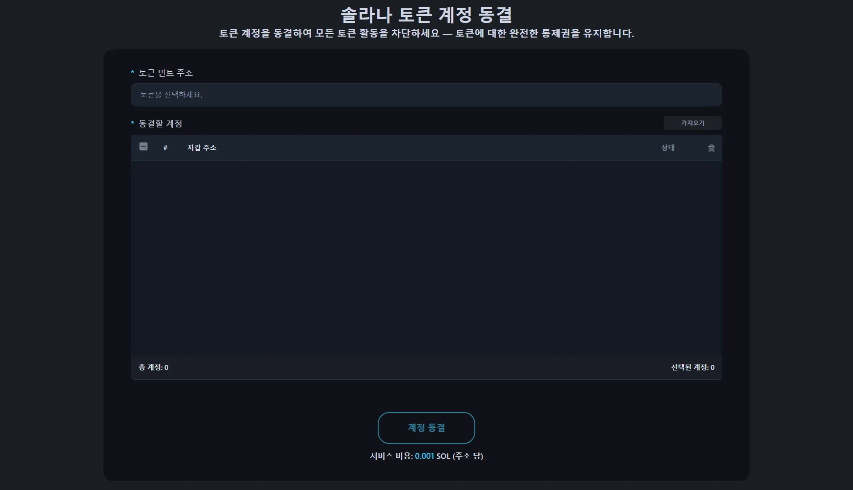 자세한 안내는 솔라나 토큰 계정 동결 튜토리얼을 참고하세요.