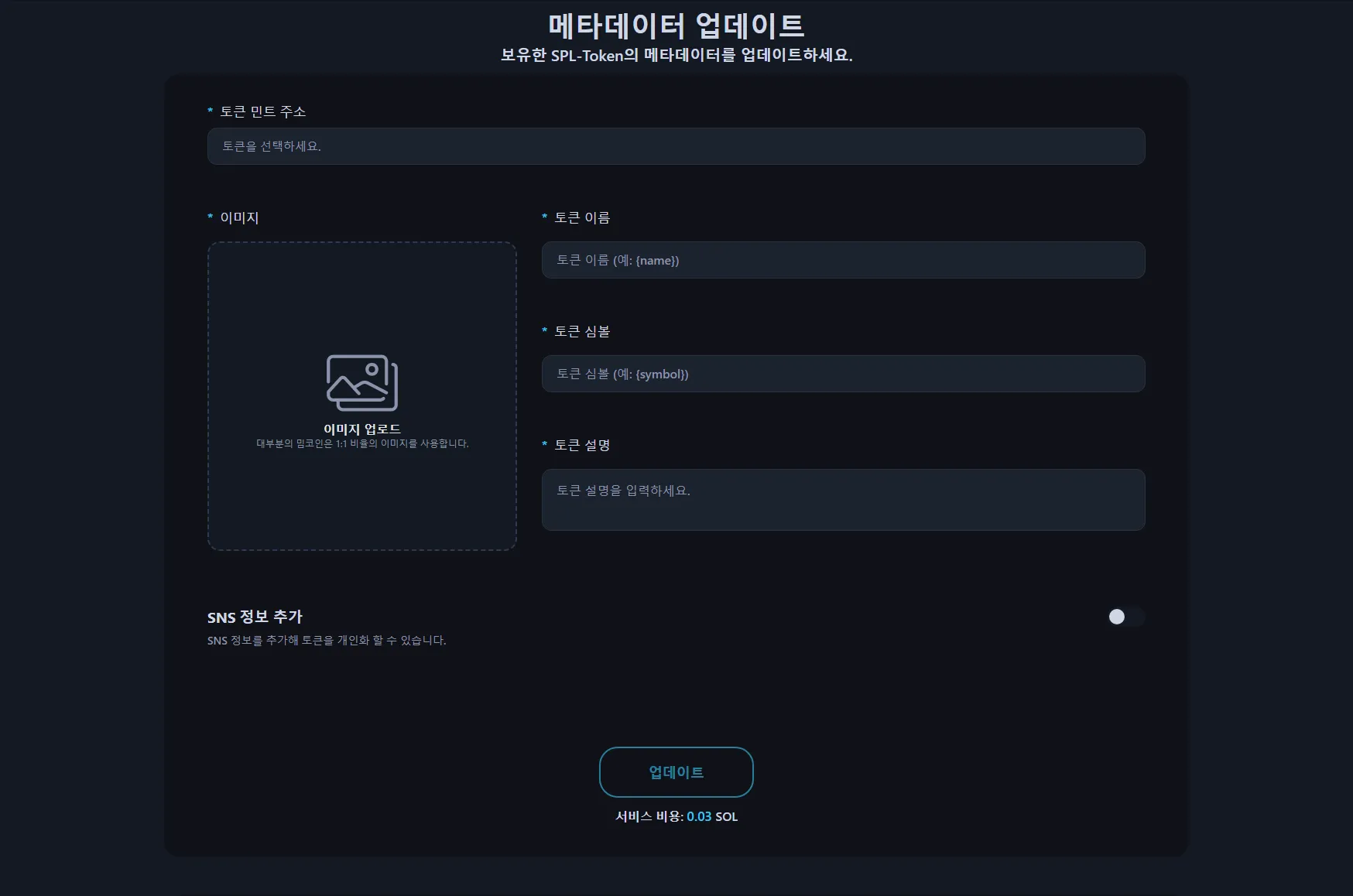자세한 안내는 솔라나 토큰 토큰 정보 수정 튜토리얼을 참고하세요.