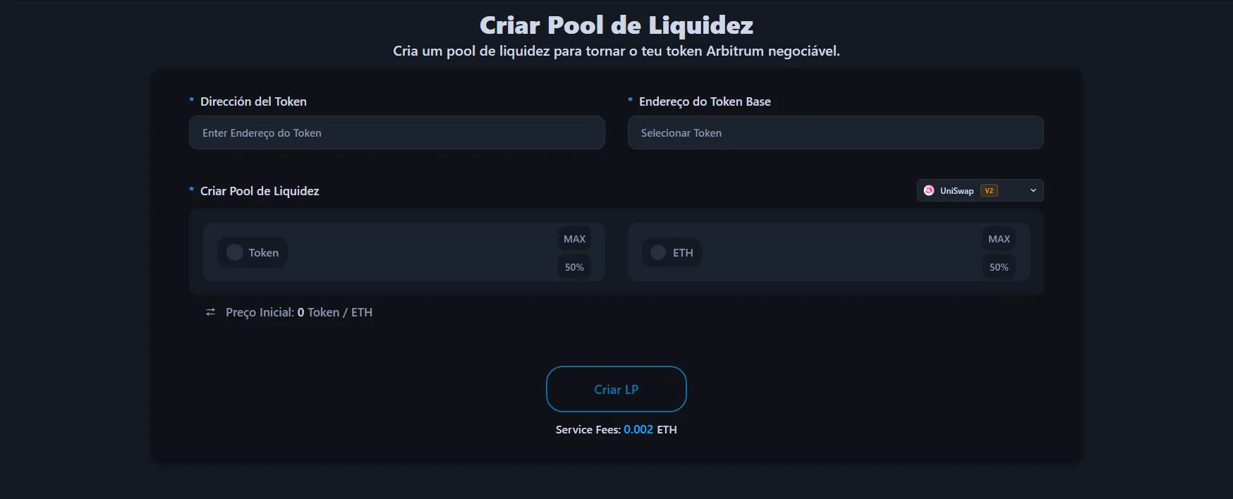Para um guia detalhado sobre a criação de pools de liquidez para tokens Arbitrum, consulte o nosso tutorial de criação de pools de liquidez em cadeias EVM.