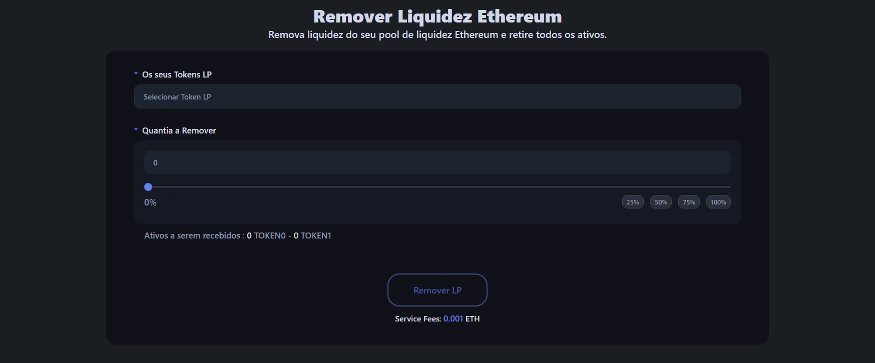 - Escolha quanta liquidez remover: pode retirar 25%, 50%, 75% ou 100%.