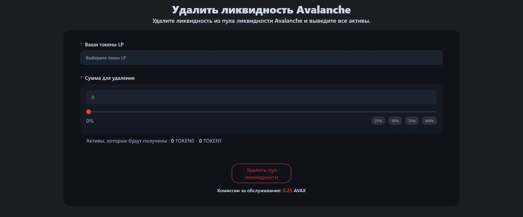 Как удалить ликвидность из пула токена Avalanche (2026)