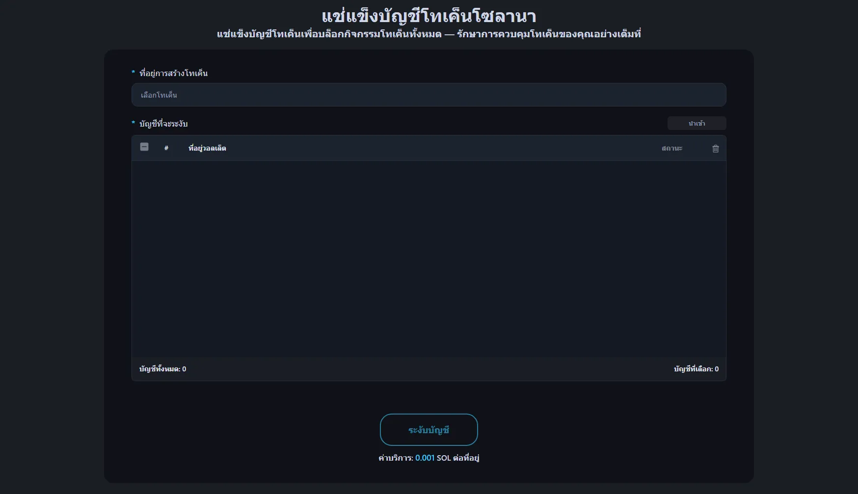 - คุณต้องมีที่อยู่กระเป๋า (บัญชีโทเค็น) ที่คุณต้องการอายัด