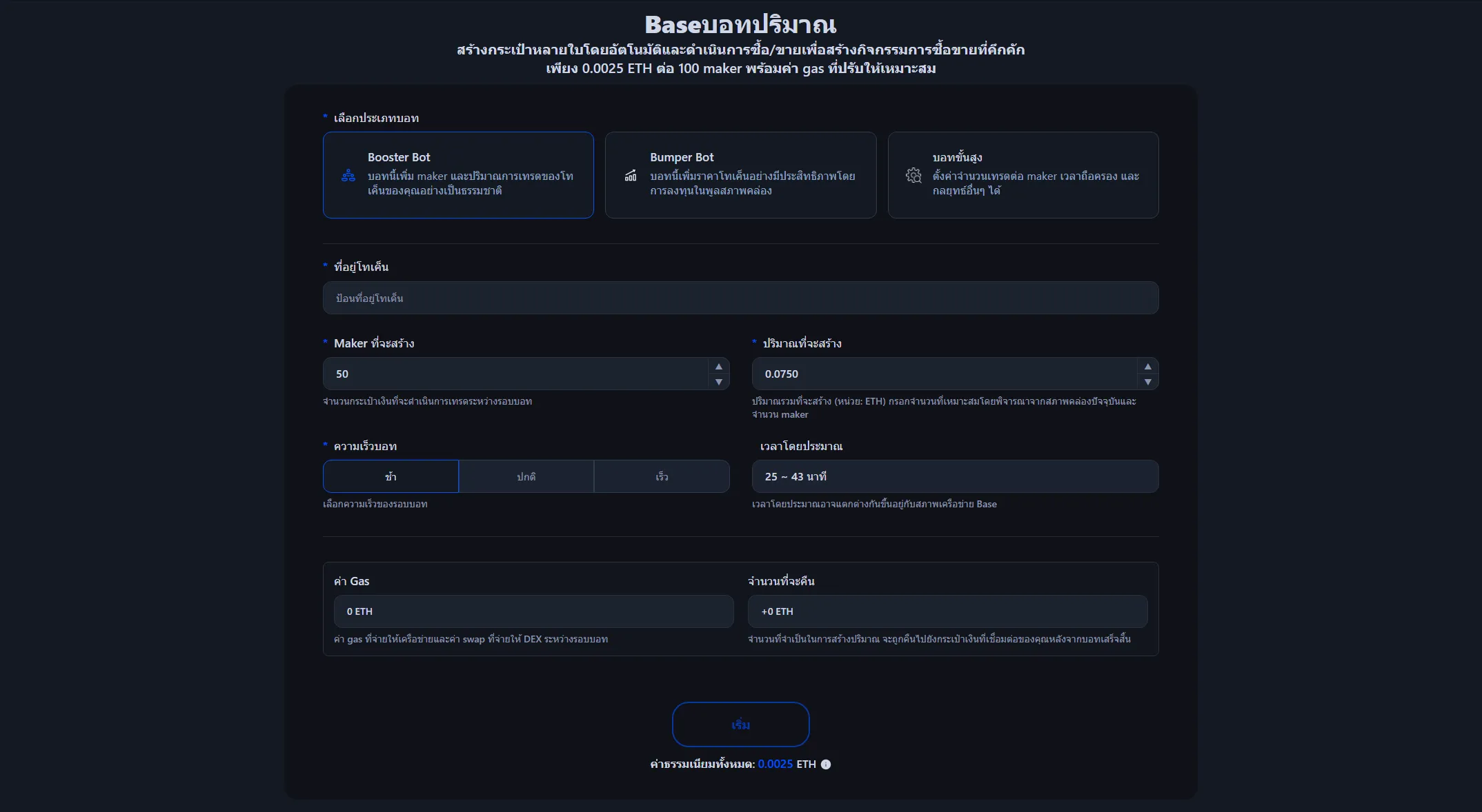 บอทเพิ่มวอลุ่ม Base - เพิ่มปริมาณการซื้อขายโทเค็น ERC-20 (2026)