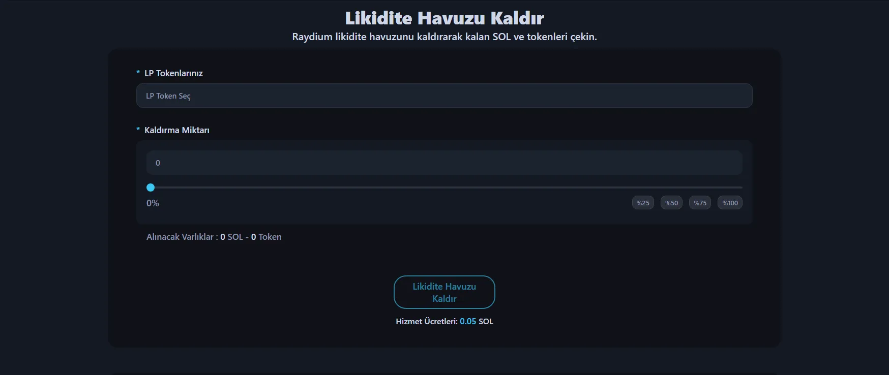 Raydium havuzuna likidite eklediniz. Şimdi geri istiyorsunuz — SOL'unuzu, tokenlarınızı, her şeyi. Sorun şu ki Raydium'un kendi arayüzü pozisyonlarınızı göstermekte yavaş olabiliyor ve havuzu üçüncü taraf bir araçla oluşturduysanız, çekim için doğru havuz ID'sini bulmak sinir bozucu olabiliyor.