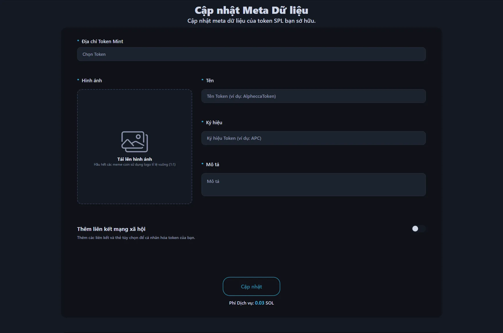 Để có hướng dẫn chi tiết, xem Hướng dẫn cập nhật metadata token Solana của chúng tôi.