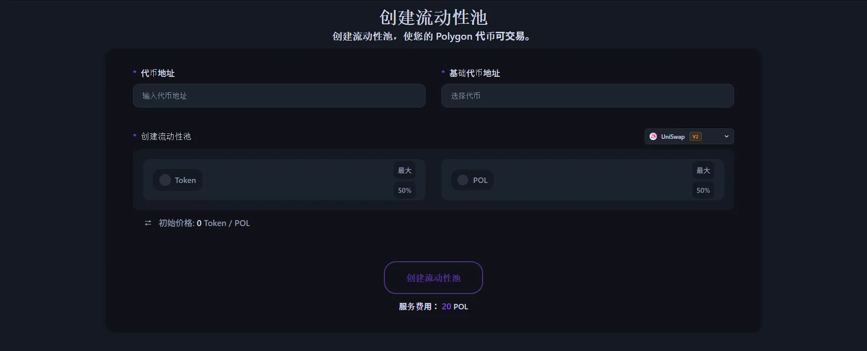 - 选择配对代币(如POL、USDT、USDC等)——这将决定您代币的价值。