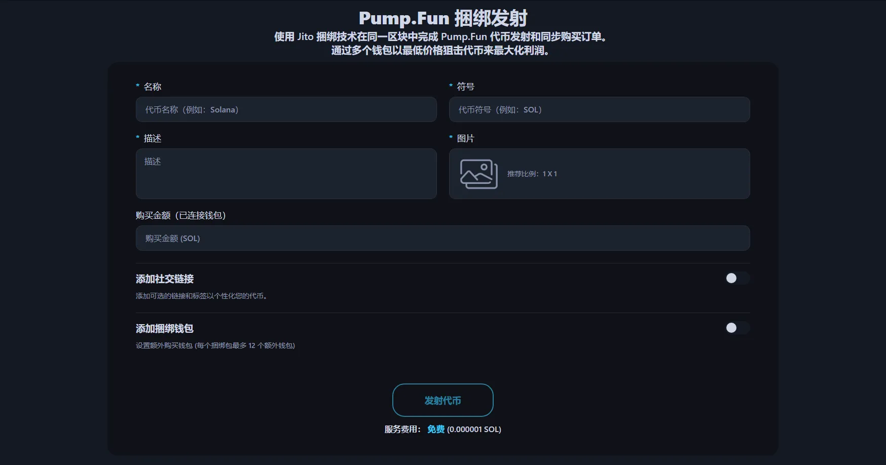 在Pump.fun上发行迷因币却没有捆绑策略,就是把钱白白送出去——大多数情况下是直接送给狙击者。Pump.Fun 开盘并买入让你可以在一个原子区块内完成迷因币发行、首次购买和多钱包同步购买。一次协调操作。没有任何空隙让机器人利用。