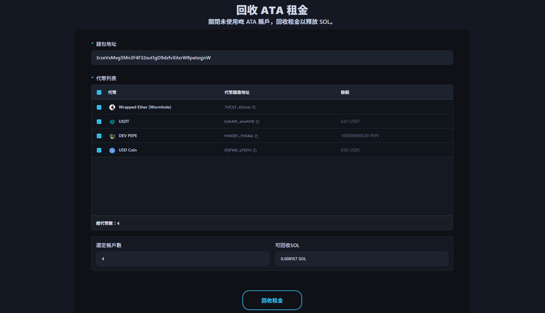 如果你用捆綁機器人或刷量機器人管理幾十甚至幾百個錢包,逐個連接每個錢包嚟回收租金非常麻煩。